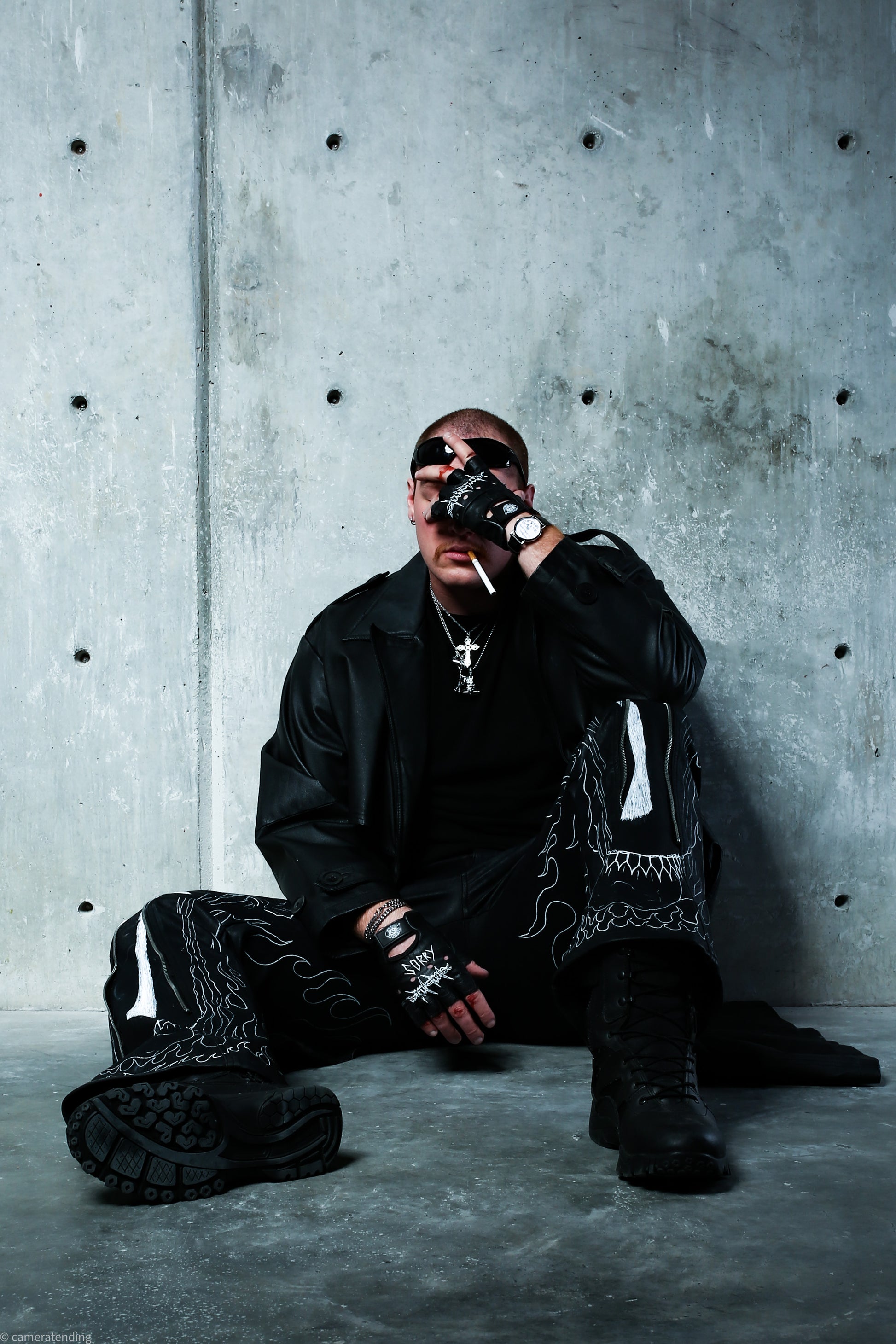 Hand Painted genuine leather flare pants showcased in Art Meets Fashion Runway show
